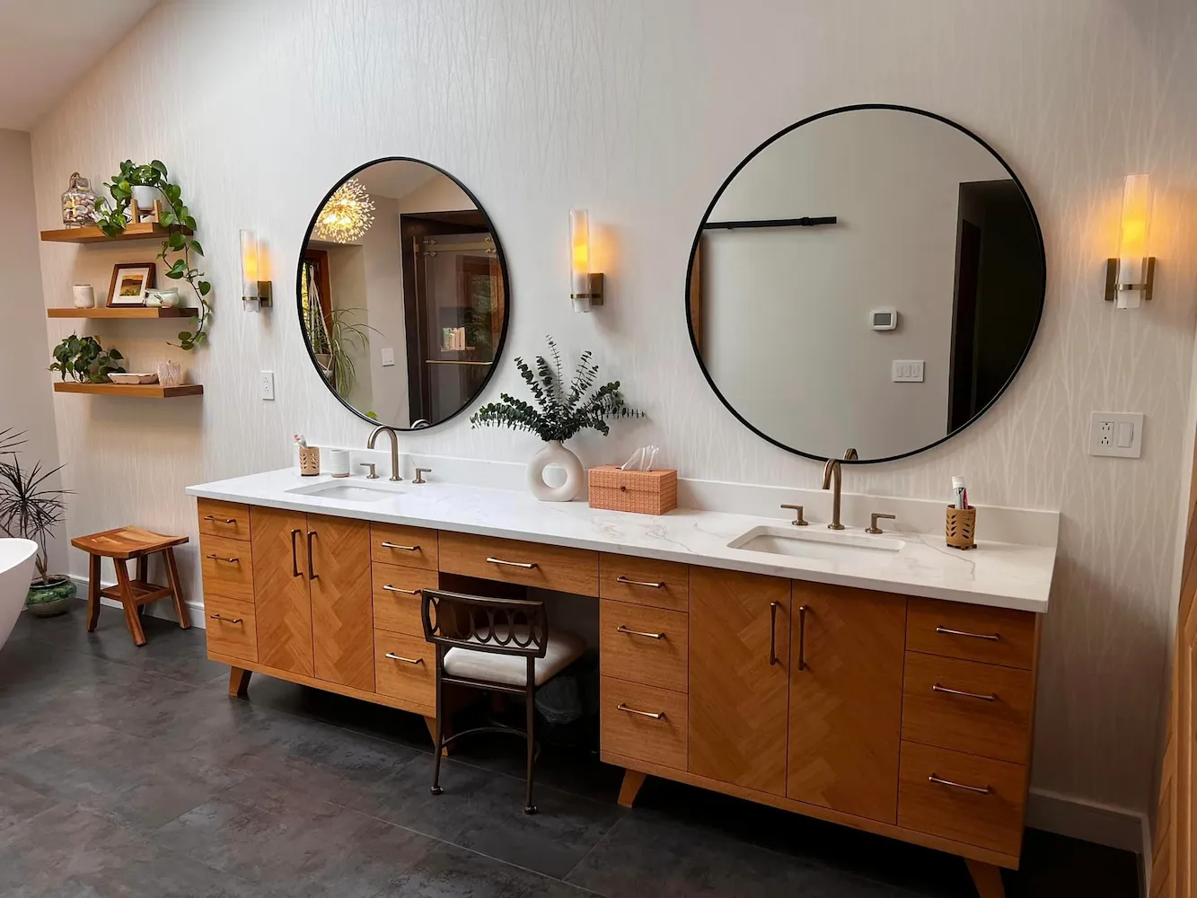 Consider options like floating shelves, built-in cabinets, medicine cabinets with mirrors, or vanities with extra storage space to make the most of your bathroom’s layout.